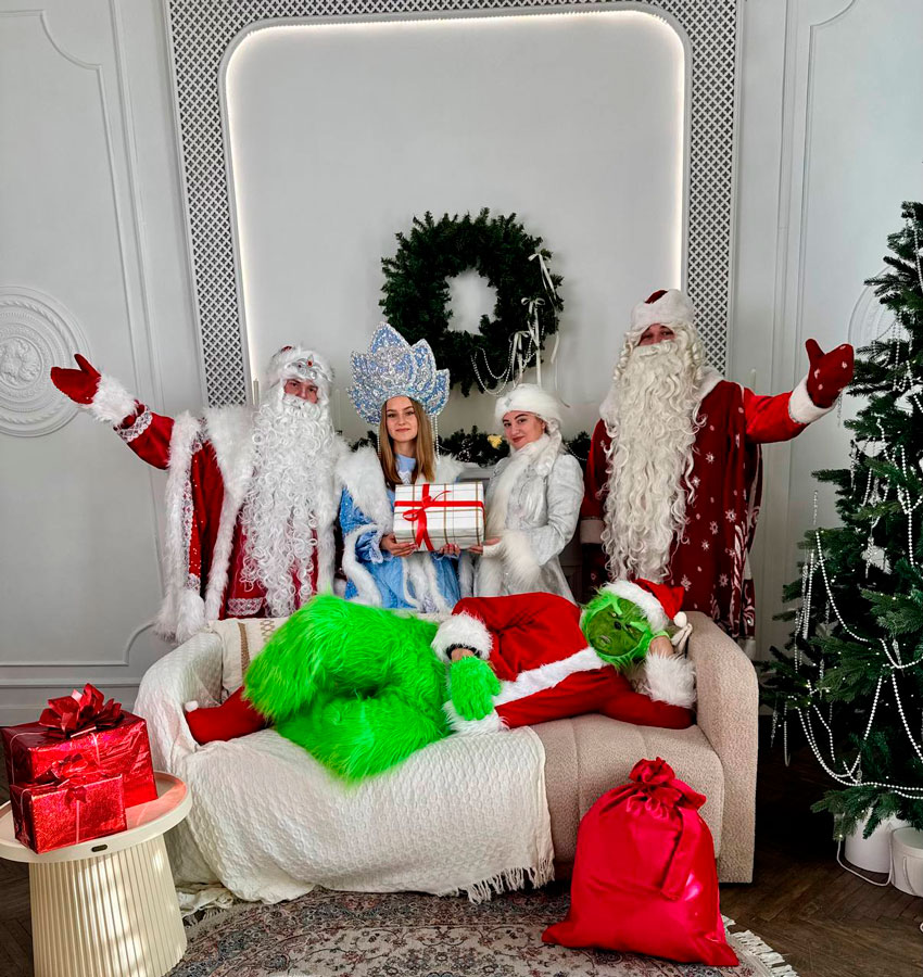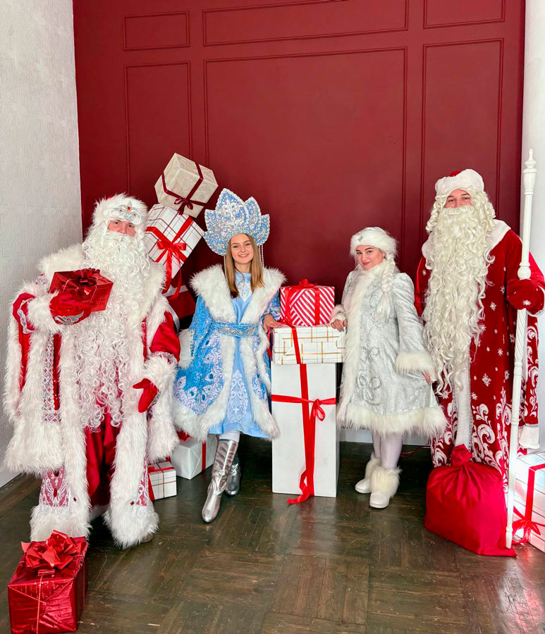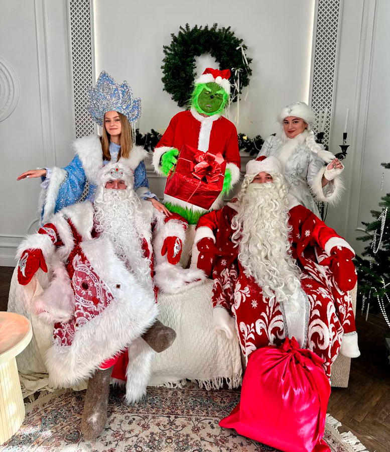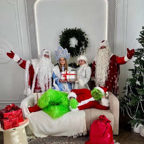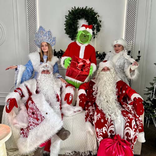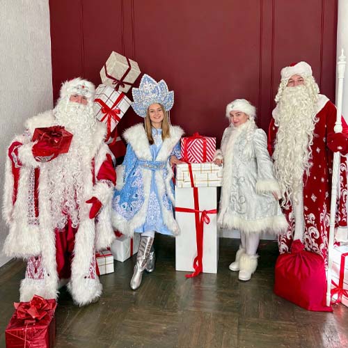 Вы можете выбрать программу, героев (у нас несколько составов Деда Мороза и Снегурочки)